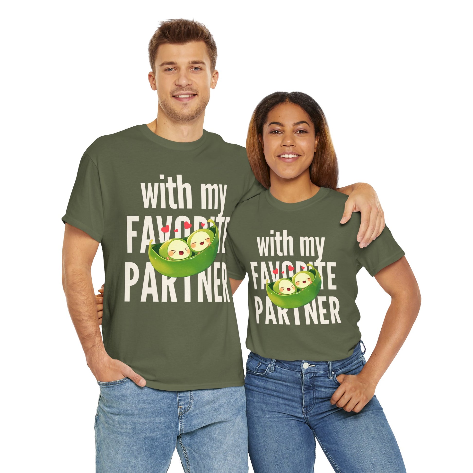 Cute Couple Tee - 'With My Favorite Partner' Cotton Tee