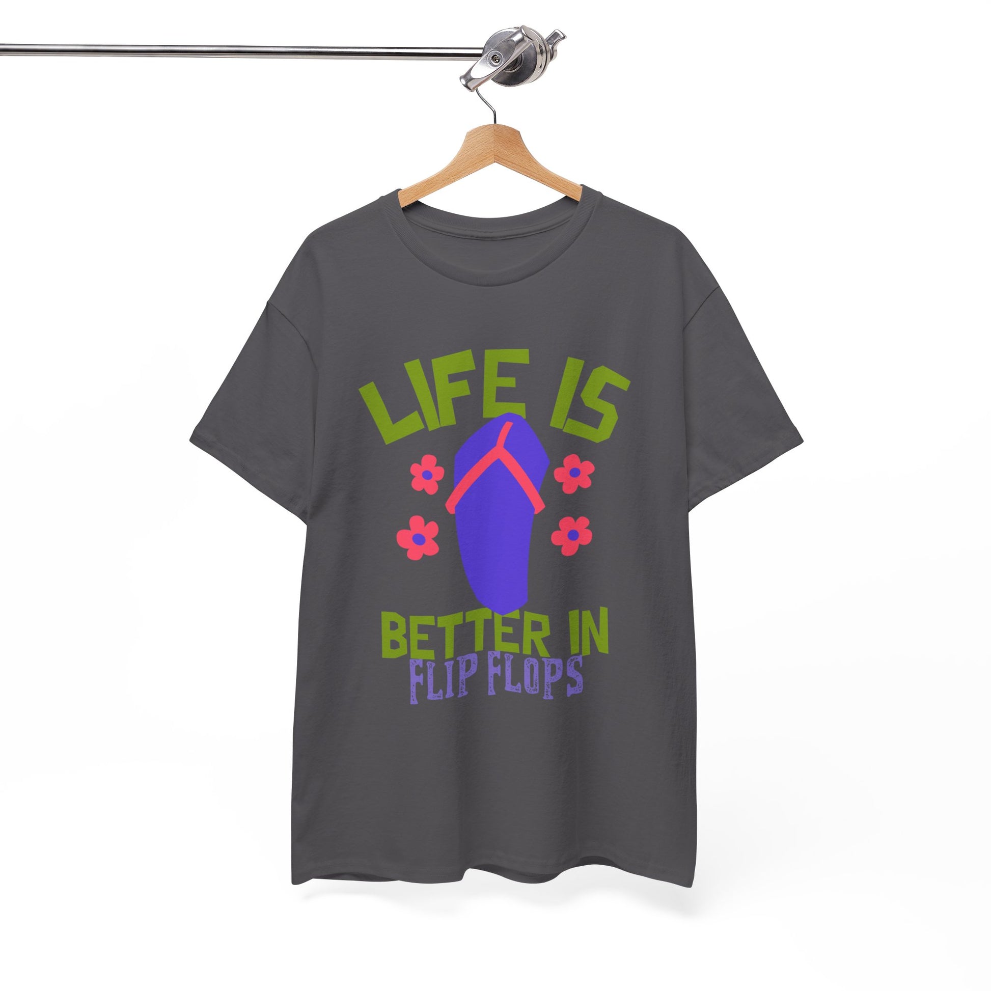 Slip into your favorite pair of flip flops and wear this shirt with pride. This shirt is a reminder to embrace the relaxed pace of life and savor every moment and those carefree summer vibes.