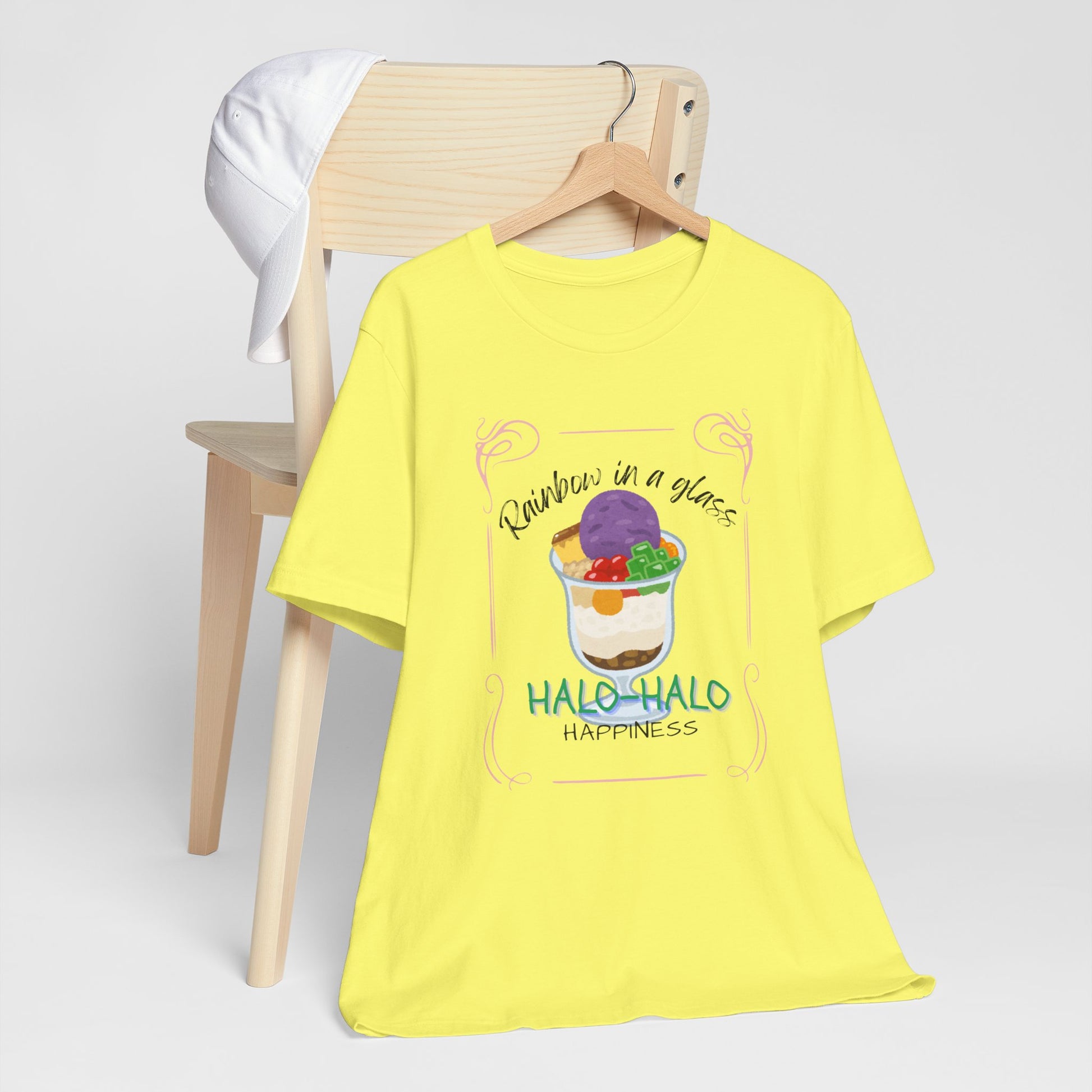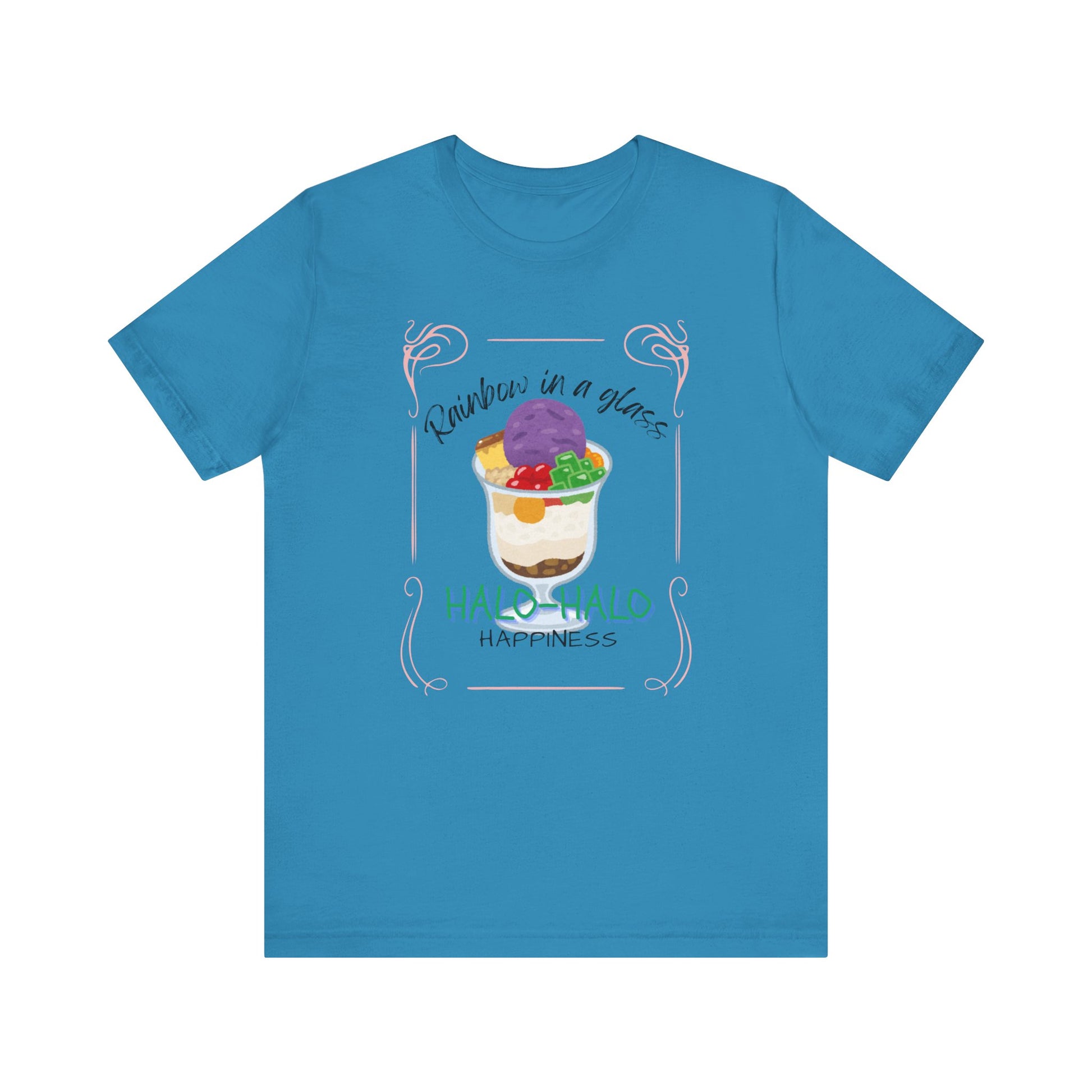 Our 'Rainbow in a Glass Halo-Halo' shirt captures the essence of Filipino summer delights. This design celebrates the colorful layers of joy found in every spoonful of life. Wear it proudly and spread the sweetness of happiness wherever your go!